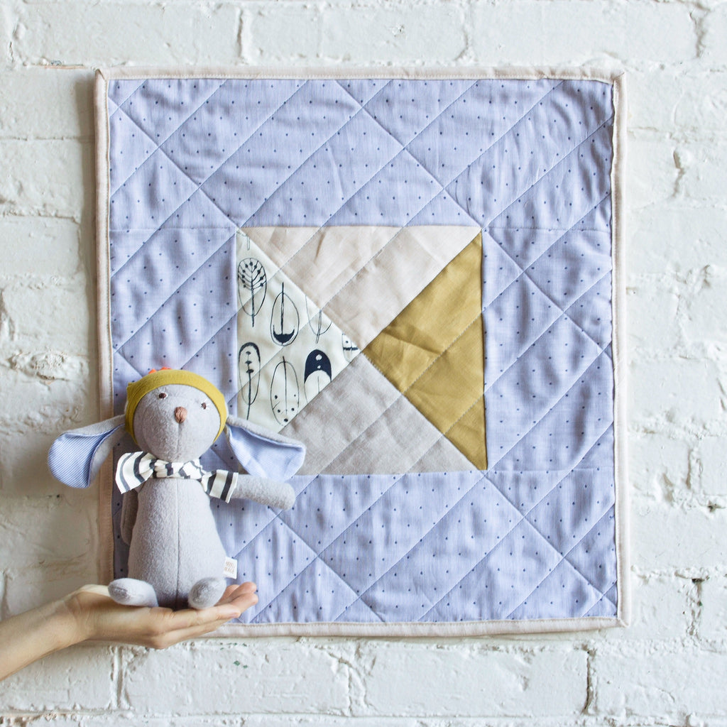 This winter season the animals of Hazel Village decided to dream up tiny, cozy, handmade gifts to give one another. Together, with the help of their human friends at Smith's General, 26 original miniature quilts were created - the perfect size for a forest picnic! Using leftover fabric scraps from the Hazel Villager's clothing, the team at Smith's General were able to sew one-of-a-kind gifts AND repurpose textile waste. These special collaboration quilts are sewn with care, made to last, and ready to love.