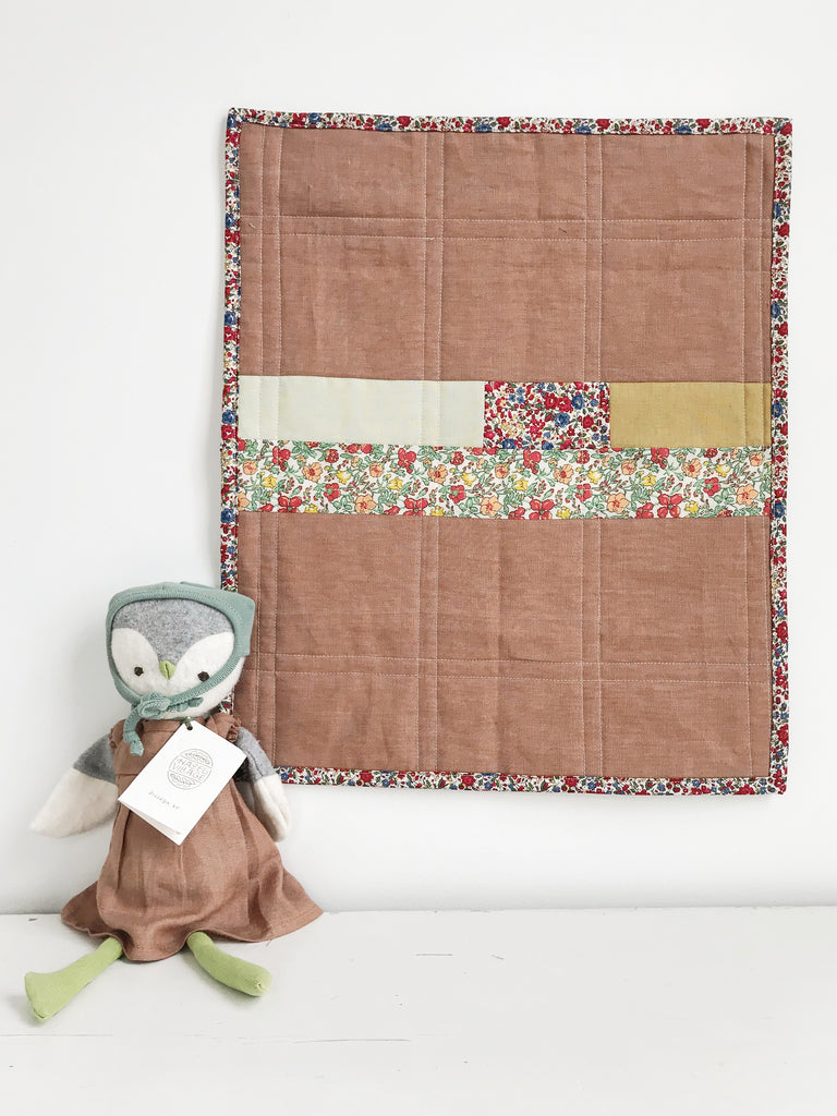 As part of our collaboration with Hazel Village, we introduce our summer collection of mini quilts. These lovely quilts pair perfectly with our doll friends, and arrive just in time for long picnics and lazying about on balmy days. We repurposed fabric scraps from the Hazel Villager's clothing line to create a one-of-a-kind gift. Hand sewn with care, made to last, and ready to love.