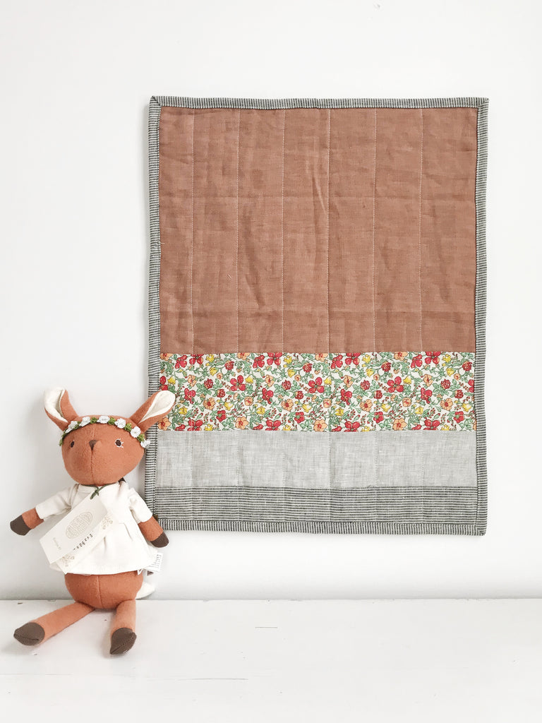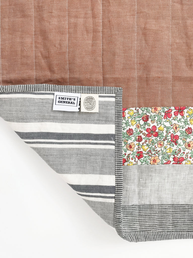 As part of our collaboration with Hazel Village, we introduce our summer collection of mini quilts. These lovely quilts pair perfectly with our doll friends, and arrive just in time for long picnics and lazying about on balmy days. We repurposed fabric scraps from the Hazel Villager's clothing line to create a one-of-a-kind gift. Hand sewn with care, made to last, and ready to love.