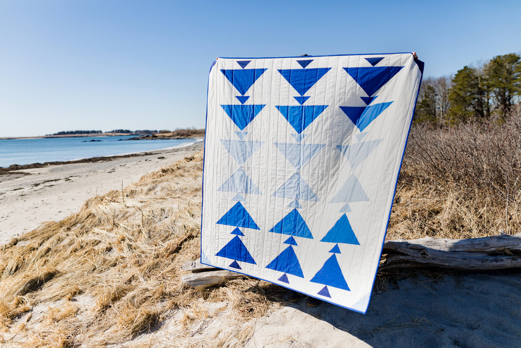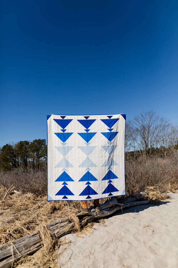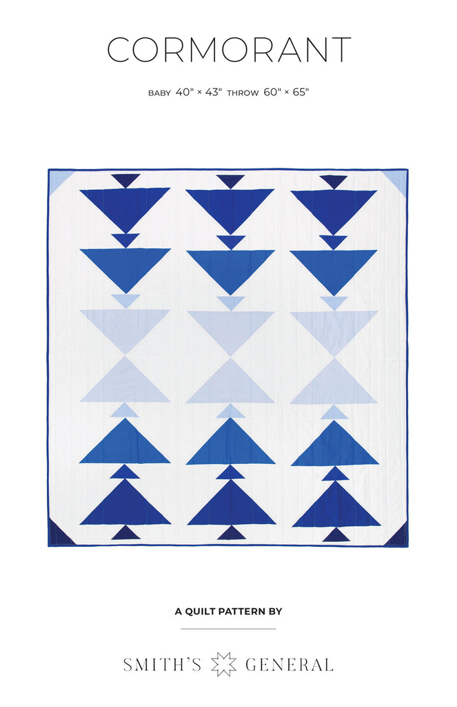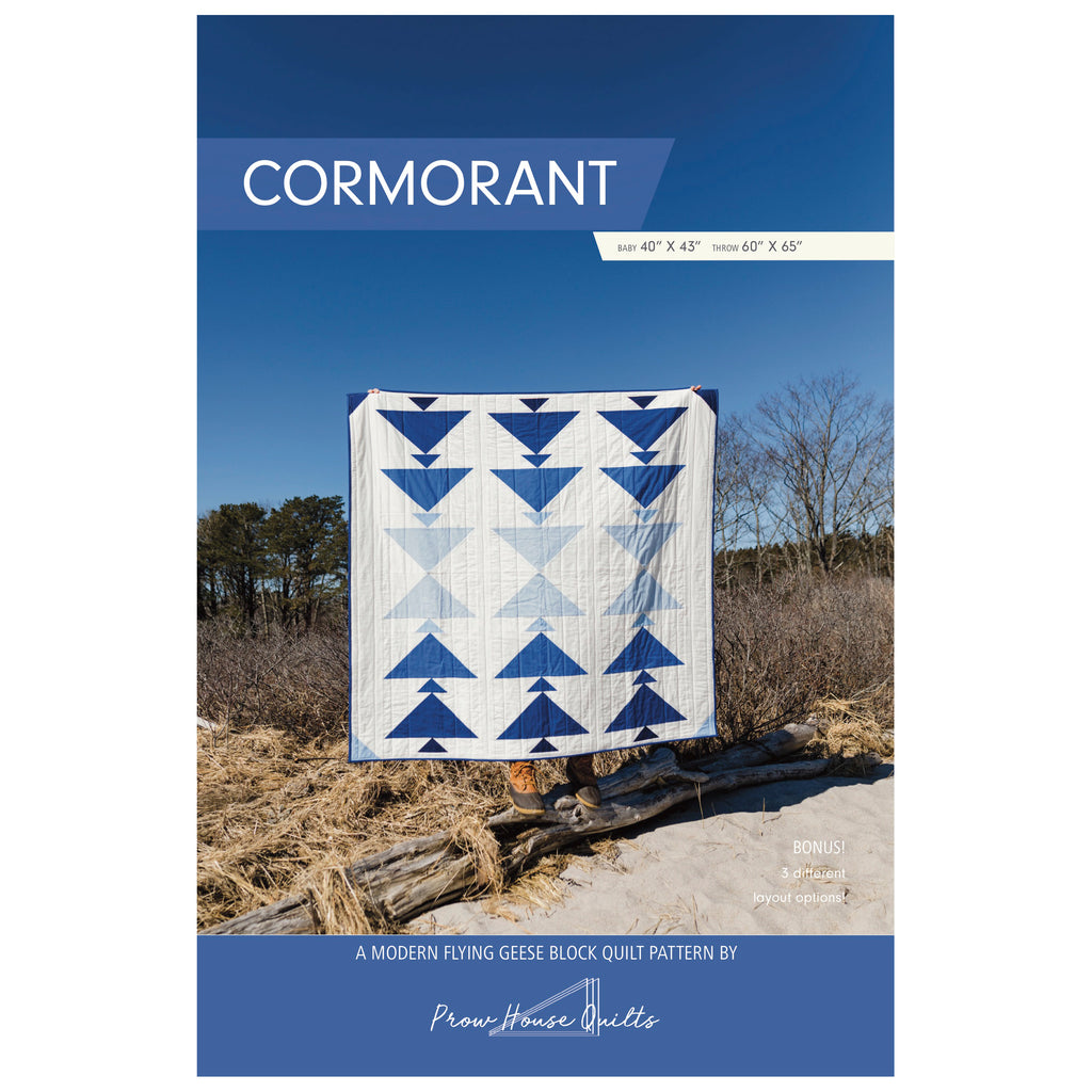 Cormorant is inspired by sea birds diving from high in the air to deep under the sea. This pattern is great for any level quilter who would like to work with a modern flying geese design, gradients and layout play and looks great with a wide array of fabrics.
