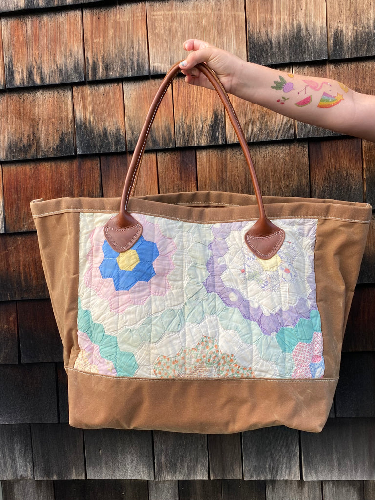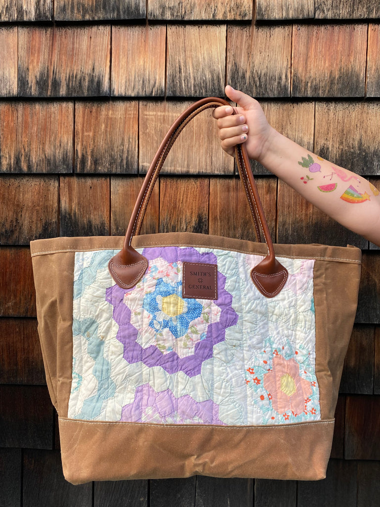 The Quilted Tote Bag was born from a desire to minimize fabric waste in our quilting process while exploring alternate forms and functions of traditional quilts.