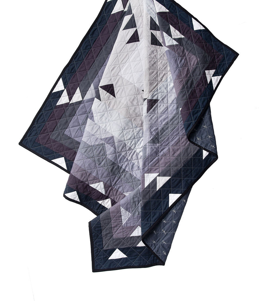 The Gather Together quilt pattern is inspired by a group of starlings gathering in murmuration in the skies of Maine. Designed many years ago, but developed into a pattern during quarantine, the name has shifted to also encompass the need to gather together during this difficult time and support each other.