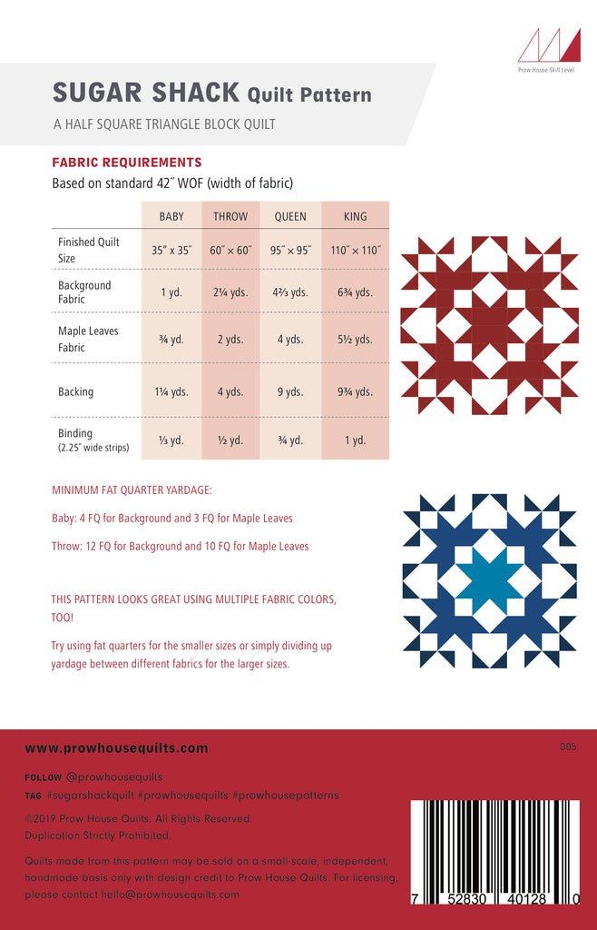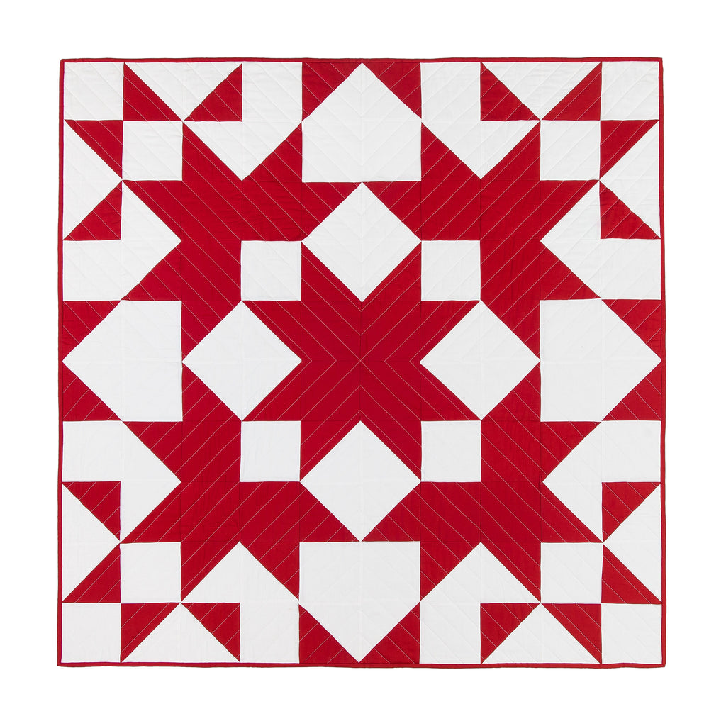Sugar Shack is inspired by a barn quilt found on the New Milford Barn Quilt Trail called Maple Leaves, which is part of a rich history of barn quilts across New England. This, combined with inspiration from the multitude of maple sugar shacks across New England's landscape, led to the design of the Sugar Shack quilt.